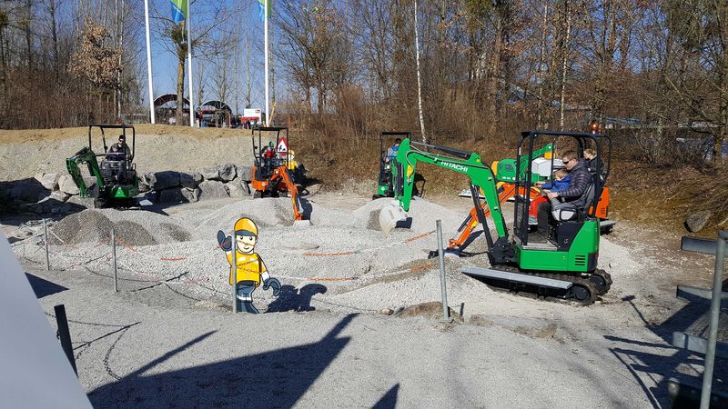 Zudem wurde der Schwenkbereich der Kompaktgeräte auf jeweils 30 Grad nach links und rechts beschränkt. Alle diese Maßnahmen dienen der Sicherheit der angehenden jungen Baggerführer, tun aber dem Gefühl des „echten Baggerns wie auf der Baustelle“ keinen Abbruch – ein Riesen-Spaß auf den Hitachi-Baggern ist allen Kids und ihren Eltern auf jeden Fall an dieser Attraktion im Ravensburger Spieleland garantiert.