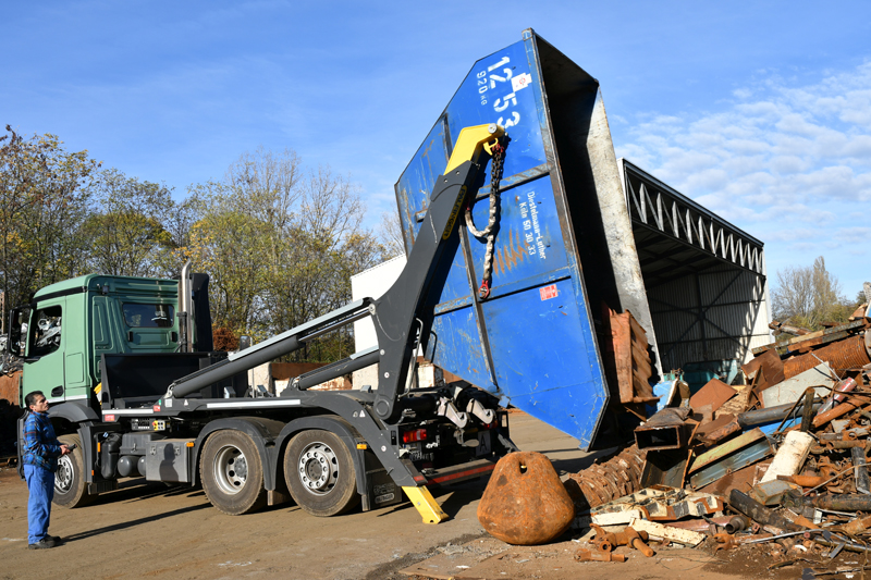 Nein, ins Homeoffice kann Wolfgang Luther, Geschäftsführer des Recycling-Fachbetriebes Diestelmann-Luther GmbH & Co.KG mit Sitz in Köln-Bocklemünd, seine Mitarbeiter nicht schicken. Auf dem 16.000 Quadratmeter großen Firmengelände wird auch während der Corona-Pandemie und des Lockdowns auf Hochtouren weitergearbeitet. FE-Schrotte und NE-Metalle werden laufend angeliefert oder von den Geschäftspartnern aus der in Nordrhein-Westfalen und in angrenzenden Bundesländern ansässigen metallverarbeitenden Industrie abgeholt. Die Wertstoffe werden zwischengelagert, sortiert, zerkleinert, aufbereitet und weitertransportiert. Bei all diesen Arbeiten spielen leistungsstarke und zuverlässige Fahrzeuge mit effizienten und ergonomischen Geräten eine Hauptrolle. Einer der jüngsten „Akteure“ ist ein Mercedes-Benz Arocs 2548 mit dem neuen Palfinger-Absetzkipper PS T18 TEC.