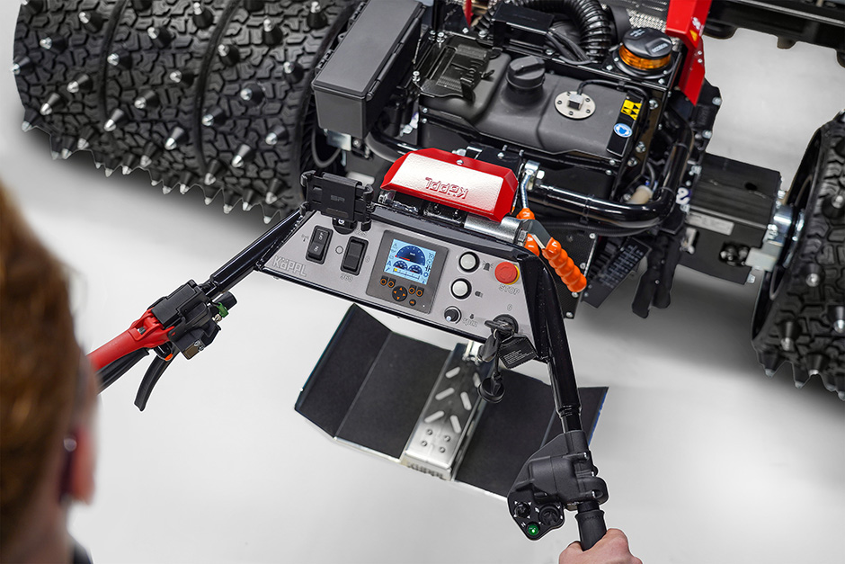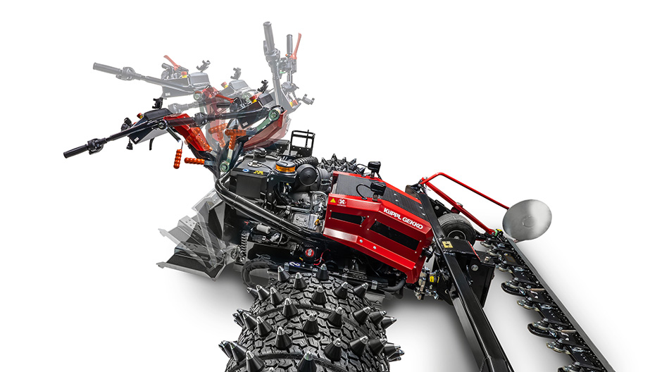 Das Armaturenbrett mit Farbdisplay zeigt die aktuellen Betriebsparameter übersichtlich an und ist in jeder Holmposition ergonomisch ablesbar. Alle wichtigen Funktionen sind per Tastendruck und Drehknopf in Reichweite. Mit dem Multifunktions-Drehgriff lassen sich alle wichtigen Funktionen der Maschine und des Anbaugerätes auch mit der Hand am Griff intuitiv und feinfühlig steuern.