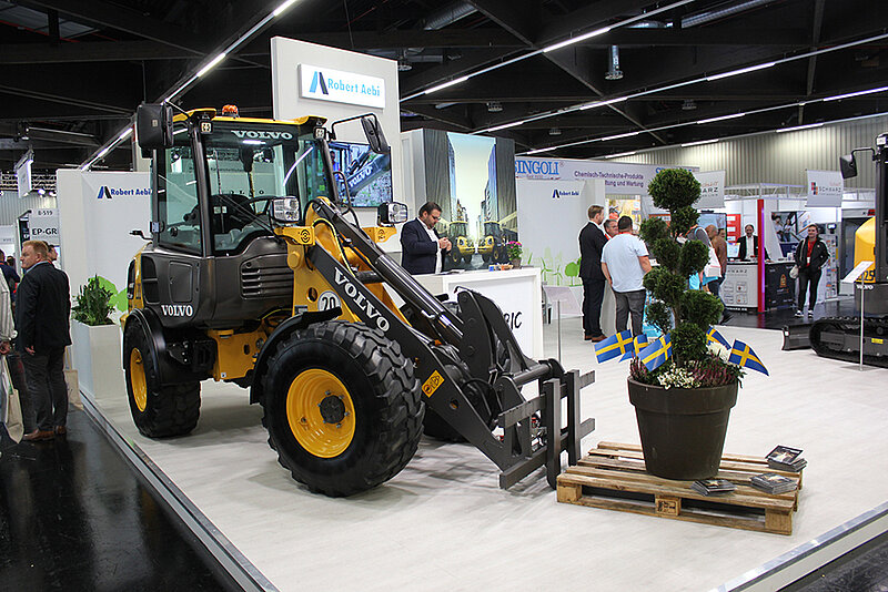 Auch auf der Kommunale vertreten ist die Robert Aebi GmbH, der Volvo Importeur für Süddeutschland. Besonderes Anliegen der Mitarbeiter auf der Messe: die E-Mobilität. Denn während die Meinung der Bauhofleiter in Deutschland in die Richtung zu gehen scheint, dass akkubetriebene Maschinen bestenfalls zum Transport taugen, sehen die Skandinavier die Dinge anders. So hat der Volvo-Konzern mit dem EC230 Electric und dem L120 Electric Conversion einen vollwertigen Kettenbagger und einen Radlader konzipiert, die trotz Akku-Antrieb bei schwereren Aufgaben eingesetzt werden können. 2024 werden die Maschinen auch in Deutschland auf den Markt kommen. „Hierzu wäre unser Wunsch, dass ein bundesweites Förderprogramm für E-Baumaschinen eingeführt wird“, berichtet Aebi-Mitarbeiter Michael Constroffer. So existieren in Skandinavien bereits einige entsprechende Förderungen und auch die E-Technik erfreut sich hoher Beliebtheit. Um zu beweisen, dass Akkumaschinen mit ihren Verbrenner-Pendants mithalten können, hat der Volvo-Konzern laut Unternehmensangaben in Stockholm bereits eine CO2-freie Baustelle realisieren können, bei der u.a. auch der EC230 zum Einsatz gekommen ist.