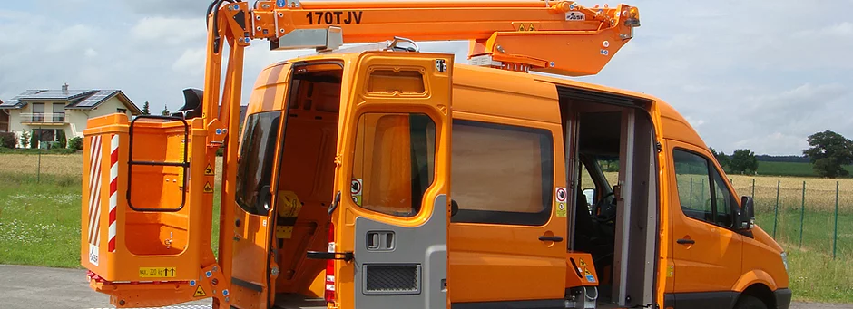 Egal ob Baumpflege, Schilderdienst, Liegenschaften, Infrastruktur oder Straßen- und Weihnachtsbeleuchtung, die LKW-Arbeitsbühne E170TJV auf Mercedes Sprinter 516 CDI ist speziell auf kommunale Anforderungen zugeschnitten.