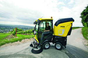 Winnenden, im Juni 2009 – Kärcher bringt mit der MC 50 erstmals eine kompakte Kommunalkehrmaschine auf den Markt, die auch für den Winterdienst und die Grünflächenpflege eingesetzt werden kann. Ausgestattet mit wechselbaren Anbausätzen lässt sich die Maschine ganzjährig für vielfältige Anforderungen im Kommunalbereich und für Reinigungsdienstleistungen nutzen. Die Saugkehrfunktion des wendigen Knicklenkers wurde mit Hilfe von Computersimulationen optimiert, sodass sie ein sehr gutes Reinigungsergebnis erzielt.