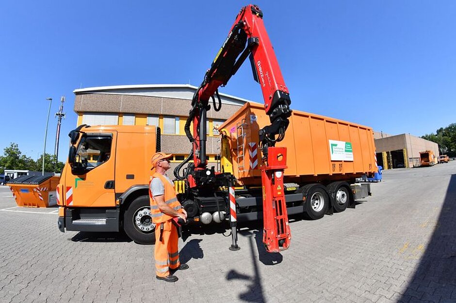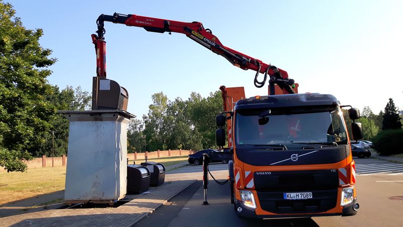 Wenn der Fahrer eines Spezialnutzfahrzeugs aus der Flotte eines kommunalen Dienstleisters 60 bis 70 Mal am Tag ein- und aussteigen muss sowie häufig auch den Kran bedienen soll, dann stehen neben Leistung und Wirtschaftlichkeit vor allem Ergonomie, Komfort und Sicherheit im Fokus. Ralf Jürgen Wolf, der Verantwortliche für die Disposition Containerdienst bei der Stadtbildpflege Kaiserslautern weiß, dass die Behörde mit dem jüngsten Kranfahrzeug im Fuhrpark ein Unikat am Hof hat. Der Volvo-Truck der FE-Serie mit seinem niedrigen Einstieg und den umfangreichen Assistenzsystemen verfügt über einen maßgeschneiderten Aufbau bestehend aus einem Epsilon-Recyclingkran und einem Abrollkipper von PALFINGER. Das gesamte Fahrzeugkonzept wurde gemäß regulärer Ausschreibung den individuellen Anforderungen des zertifizierten Entsorgungs-Fachbetriebes angepasst.