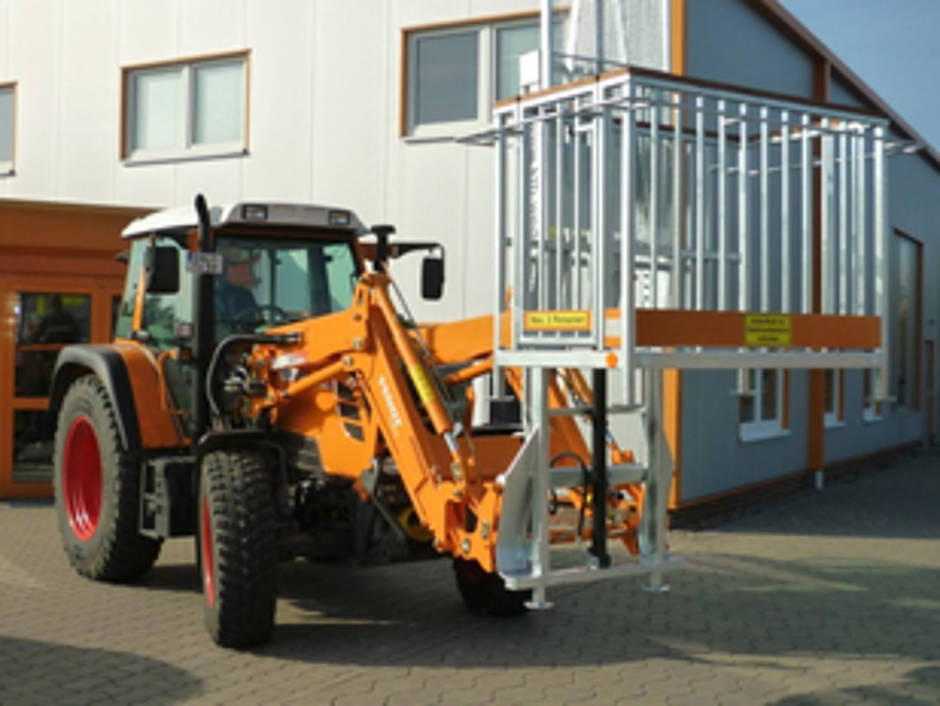 Hierzu werden von der Firma KTB ein spezielles Hubgerüst und eine spezielle Arbeitsplattform für Radlader angeboten.