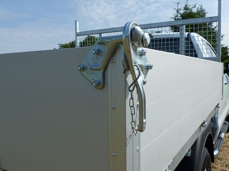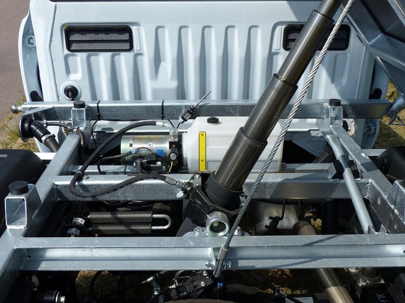Auf Wunsch ist die Montage eines durchgängigen Stahlblechbodens möglich. In den Bodenrahmen eingelassene Zurrösen ermöglichen die Nutzung der kompletten Ladefläche ohne Hindernisse. Darüber hinaus ist, durch die DIN EN 12640 geprüften Zurrbügel in Verbindung mit dem Bodenrahmen von KUNATH, die Vorbereitung für eine Ladungssicherung gegeben. Mit den drei abklappbaren Seitenwänden und der pendelnden Heckbordwand – ebenfalls abklappbar – eignet sich das Fahrzeug zum Transportieren und Kippen von schweren Materialien. Durch die Bedienung im Fahrerhaus kann man den Kippvorgang über einen mehrstufigen Teleskopzylinder sowie ein 12 V elektrohydraulisches Aggregat auslösen. Dabei wird durch einen „Summer“ darauf aufmerksam gemacht, dass die Kippbrücke sich im angekippten Zustand befindet.