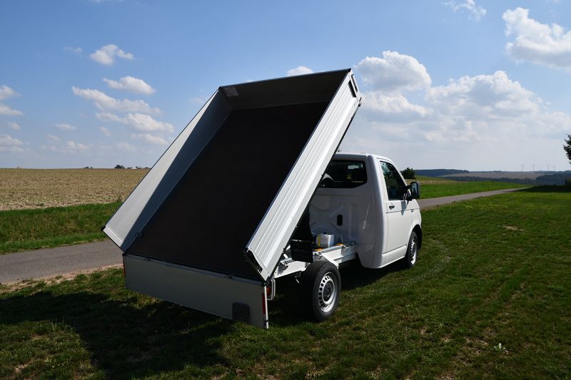 Wer zeitsparender und effizienter mit allen Schüttgütern seines Betriebs umgehen möchte, nutzt den Kunath Umbausatz zum Hinterkipper für Volkswagen Transporter: für Einzel- und Doppelkabine, ohne technische Veränderung an der Werkspritsche und mit geringem Eigengewicht für niedrigen Nutzlastverlust.