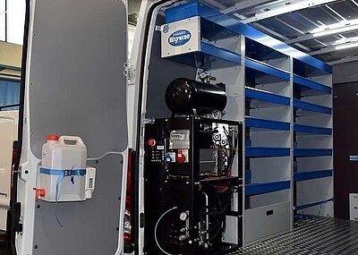 Die effizienten Hochdruckreiniger sind sowohl mit Düsenbalken zur Straßenreinigung als auch einer Hochdrucklanze ausgestattet. Es gibt sie in den vier Grundmodellen S, M, L und XL mit Wasserbehältervolumen von 280 L, 560 L, 840 L und 1120 L. Die Modelle M, L und XL besitzen für die professionelle Straßenreinigung einen hydraulisch drehbaren Düsenbalken.