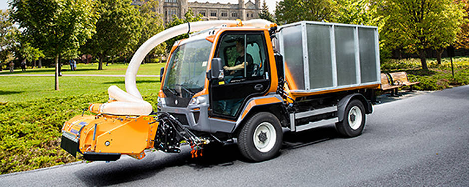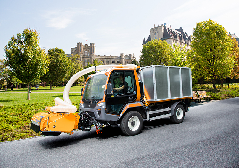 Gerade im Herbst stelle das herabfallende Laub viele Kommunen vor große Herausforderungen. Hier komme die Kombination des Unitrac mit dem Laub- und Abfallsauger zum Tragen. Das Anbaugerät sei für Aufnahme von Laub und Leichtmüll auf Wiesen und festem Untergrund wie Beton oder Asphalt maßgeschneidert. In Verbindung mit einem Sammelcontainer oder Leichtbauaufsatz könnten sehr effektiv große Mengen Laub aufgenommen und entsorgt werden. Noch mehr Saugkraft habe die Kehrmaschine zu bieten: damit könne neben Laub auch schweres Kehrgut wie Abfall nach Großveranstaltungen aufgenommen oder ein Abwassergully-Sieb gereinigt werden. Durch die Sprüheinrichtung entstehe kaum Staub bei der Arbeit. Der integrierte Hochdruckreiniger erleichtere die perfekte Entleerung des Kehrgut-Containers.