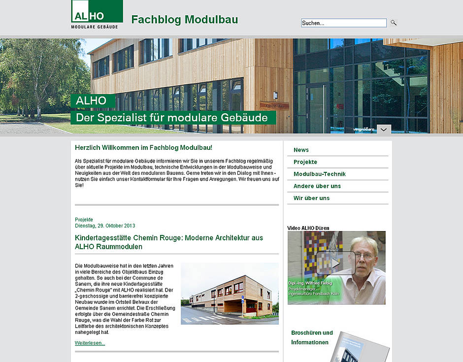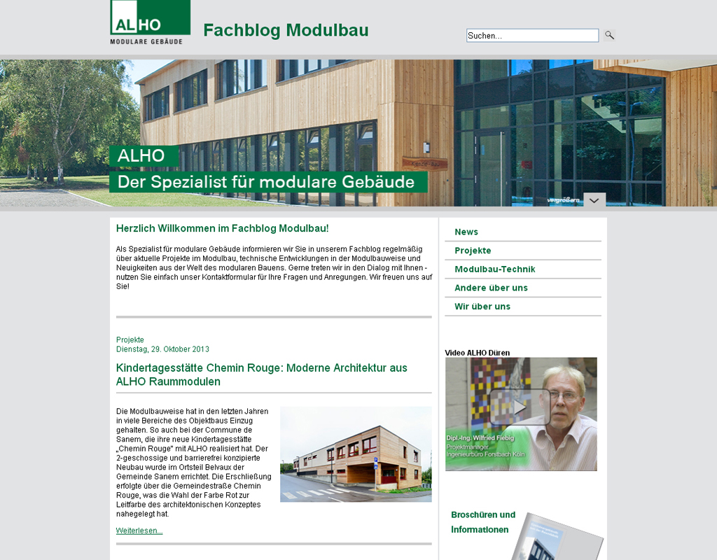 www.modulbaublog.de können Beiträge im Text-, Bild- und Videoformat aufgerufen werden, die das Unternehmen ALHO aktuell, lebendig und persönlich repräsentieren.
