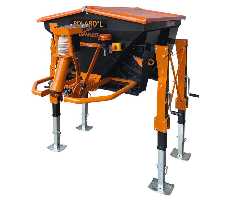 Wenn man ausschließlich Sand und Splitt streuen möchte, bietet das Unternehmen für den POLARO M/L/XL zudem optional einen verstärkten Schneckenantrieb an. Als komfortable Abstellhilfe bzw. manuelle Hebebühne für den leeren POLARO M/L/XL hat LEHNER neuerdings auch höhenverstellbare Stützfüße im Programm, womit dieser manuell abgelassen, angehoben und darauf geparkt werden kann. Die Stützfüße sind für verschiedene Fahrzeugbreiten erhältlich.