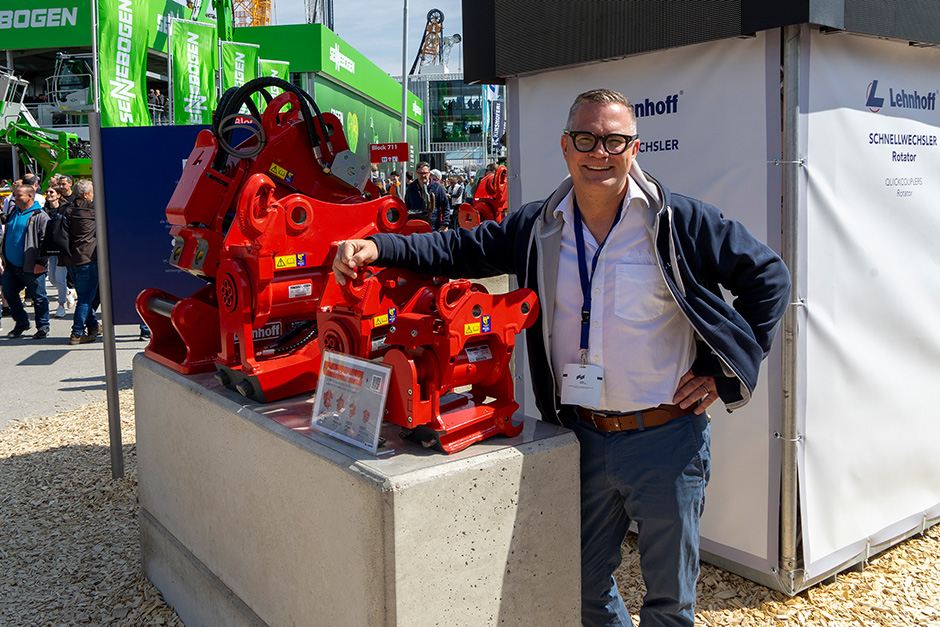 Durch den symmetrischen Aufbau des Ventilblocks lassen sich Anbaugeräte um 180 Grad gedreht aufnehmen – ein Vorteil, der auf der Messe für reges Interesse sorgte. Gerade bei kompakten Maschinen wächst die Nachfrage nach dieser Art von Flexibilität laut Lehnhoff spürbar.