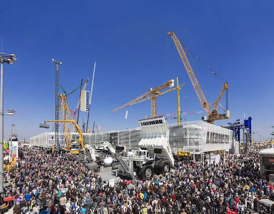 Bereits ein halbes Jahr bevor die internationale Leitmesse für Bau-, Baustoff- und Bergbaumaschinen, Baufahrzeuge und -geräte ihre Pforten öffnet, hat Liebherr auf dem Freigelände in München mit dem Aufbau seines Stands begonnen. Mit einer Fläche von fast 14.000 Quadratmetern bietet dieser im Freigelände (809-813) erneut Platz für mehr als 60 Exponate. Zu sehen sind zahlreiche Neuheiten und Weiterentwicklungen aus den Bereichen Turmdrehkrane, Mobil- oder Raupenkrane, Erdbewegung, Materialumschlag, Spezialtiefbau, Mischtechnik und Mining.