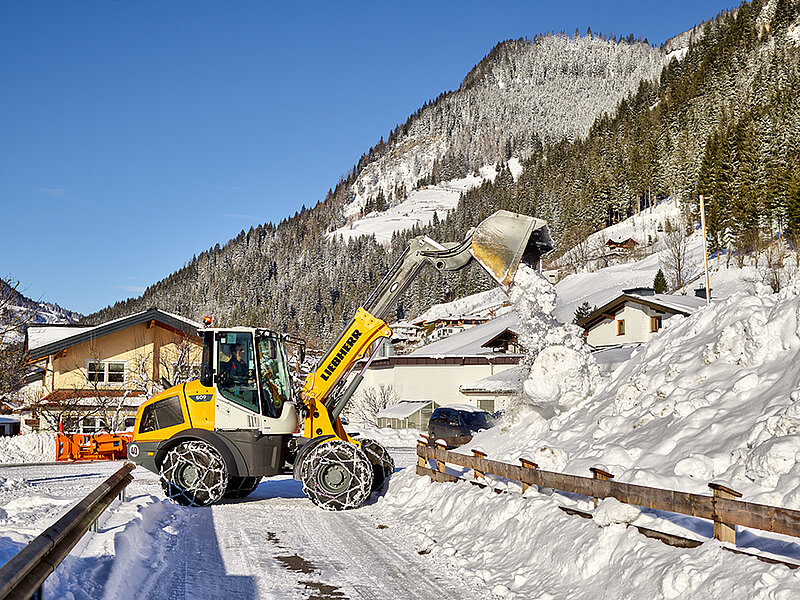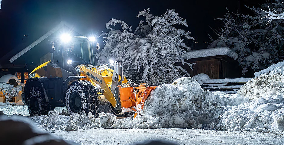 Im Rahmen der gesetzlichen Räum- und Streupflicht benötigen Kommunen und Dienstleister leistungsstarke Fahrzeuge für den Winterdienst. Mit ihrem bewährten und kraftvollen hydrostatischen Fahrantrieb erfüllen Liebherr-Radlader diese hohen Anforderungen. Sie beschleunigen stufenlos, ohne Zugkraftunterbrechung und ohne spürbare Schaltvorgänge. Mittels hydraulischem Schnellwechsler können Schneeschilder, Schneefräsen und Streugeräte problemlos an die Radlader montiert und für verschiedenste Aufgaben eingesetzt werden. Liebherr-Radlader gewähren auch Komfort und eine hohe Sicherheit: etwa mit ergonomisch gestalteten Kabinen, (optional) beheizbaren Sitzen, innovativen Assistenzsystemen wie beispielsweise die aktive Personenerkennung heckseitig und einer sehr guten Arbeitsbeleuchtung.