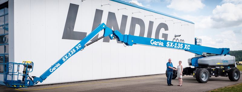 „Beim Kauf einer solchen Arbeitsbühne wird bei uns das gesamte Team von LINDIG involviert und die Anschaffung gründlich analysiert. Eine Vorführmaschine hat unseren Mitarbeitern ganz klar vor Augen geführt, dass die SX-135 XC eine positive Ergänzung für unseren Mietpark ist. Wir sind überzeugt, dass unsere neue Genie SX-135 XC Teleskoparbeitsbühne uns ein breites Spektrum neuer Vermietmöglichkeiten bieten wird, insbesondere in den Bereichen Bau und Wartung, sowie für die Installation und den Service von Lichtwerbung und ähnlichen Einrichtungen in Stadien und Einkaufszentren.“