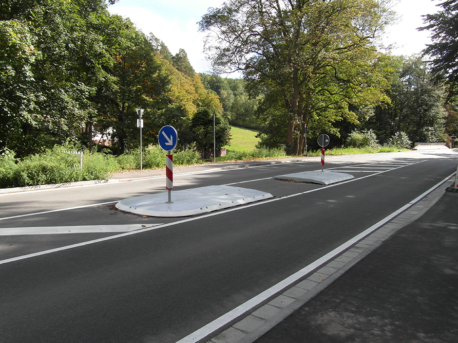 Bei Straßensanierungen kommt die Lüft GmbH & Co. KG zum Einsatz: Mit der Querungshilfe des Unternehmens können Straßen rechtzeitig wieder für den Verkehr freigegeben werden – auch wenn noch ein paar Restarbeiten zu erledigen sind. Zwei entsprechende Viertel-Elemente bilden den Inselkopf der Querungshilfe, der eine Breite von 2,50 Metern aufweist. Bei Bedarf kann die Insel mit passenden Rechteckteilen in 50-cm-Schritten verbreitert oder verlängert werden. Als letztes werden die Insel-Elemente – die aus 100 Prozent recyceltem Kunststoff bestehen –vorgesetzt, verschraubt und entsprechend beschildert. Die Flexinsel kann ebenfalls mit taktilen Markierungen kombiniert werden, um das Queren weiter abzusichern.