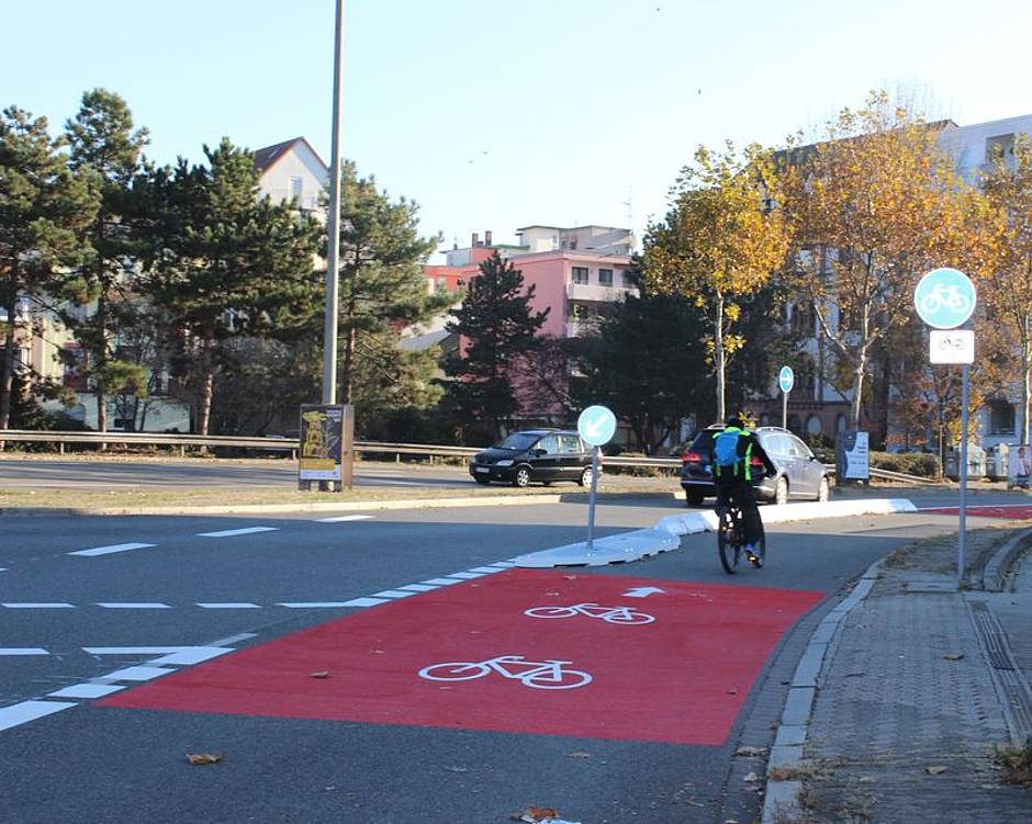 Die Stadt Ludwigshafen ändert die Verkehrsführung in der Heinigstraße: Um den Verkehr und damit die Feinstaubbelastung in der Ludwigshafener Innenstadt zu senken, wurde die bisher vierspurige Fahrbahn auf drei Spuren reduziert. Die vierte Fahrspur dient ab sofort als sogenannte Protected Bike Lane, um den Radfahrern den dringend notwendigen Raum zu geben, gleichzeitig aber auch einen gewissen Schutz zu gewähren.