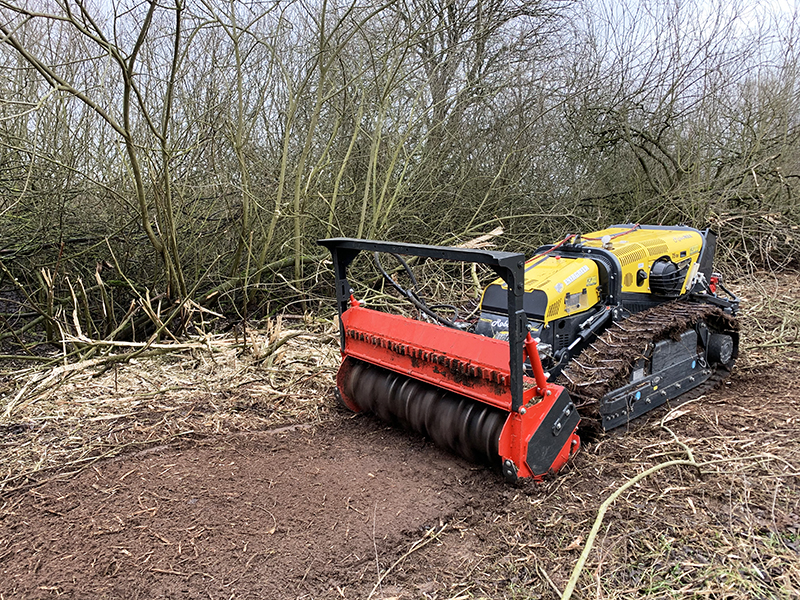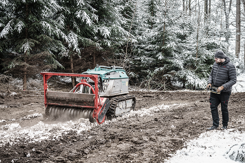 Der neueste Mulcher M450h wurde speziell für den Anbau an funkferngesteuerte Geräteträger entwickelt. Dabei deckt der Gestrüppmulcher einen Leistungsbereich zwischen 60 bis 110 l/min ab und ist bestens für den Einsatz in dichtem Gestrüpp und auf schmalen Wege geeignet. Der BCS-Rotor („Bite-Control-System“) steuert effektiv die Mulchtiefe für ein gleichmäßiges Mulchergebnis und maximale Leistungskontrolle. Dabei kann die Werkzeugbestückung des Rotors leicht ausgetauscht und an die Anwendung angepasst werden. Gemischte Werkzeugbestückungen sind bei Anwendungen mit Bodenkontakt nützlich, um ein optimales Gleichgewicht zwischen Schneidleistung und Werkzeugstandzeit zu erreichen. Das M450-Gehäuse ist standardmäßig aus Hardox gefertigt. Dank der wechselbaren Gegenschneiden im Gehäuse wird das Material zusätzlich zerkleinert. Der leistungsstarke Antrieb bietet einen effizienten Überlastschutz.