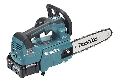 Makita bietet erstmals Akku-Kettensägen im XGTSystem an. Das XGT-System ermöglicht mit leistungsstarken 40 V max. und 2 x 40 V max. Akku-Maschinen und -Gartengeräten auch Anwendungen, die zuvor netzstrom- und benzinbetriebenen Maschinen vorbehalten waren. Dank des kraftvollen Akkus sowie eines bürstenlosen Motors der neuesten Generation erreichen die neuen 40 V max. Akku-Kettensägen UC011G und UC012G eine Ausgangsleistung von bis zu 1.600 W und erreichen so die Leistungsklasse einer Benzinkettensäge mit einem Hubraum von 42 cm³. Sie sind damit ideale Begleiter für den anspruchsvollen, professionellen Anwender. Die Kettengeschwindigkeit beträgt bis zu 25,5 m/s.