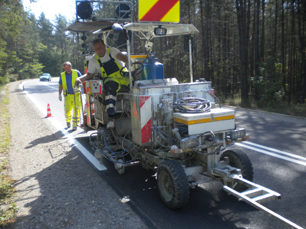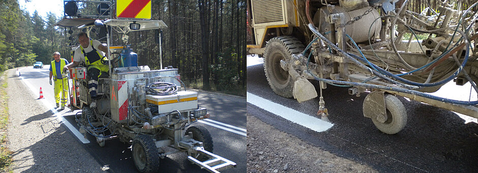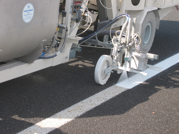 „Bei einem Produkt mit einer Dichte von 1,6 werden für eine Markierung von 100 km Länge mit 15 cm Strichbreite und 600 µm Schichtdicke schon 1.800 kg mehr Material benötigt als mit Triflex Preco Cryl Spritzharz 98:2“, betont Kranzmann. „Das allein zeigt schon, wie groß das Einsparpotenzial ist.“