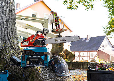 Begründet ist das meist in den kleineren Akkus, da diese lediglich mit 18 V bestückt werden, die dann aber auch in Akku-Schrauber und Co passen. Inzwischen hat sich eine bunte Fülle an Spannungen etabliert: Neben den klassischen 18 V herrschen vor allem 36-V-Systeme vor, aber auch 40 und 48 V werden gefahren. Cramer Tools ist sogar mit 82 V unterwegs, wobei der kleine Drei-Ah-Akku in unter 20 min leer gesägt ist. Der größte bietet jedoch acht Ah, womit die Säge selbstredend länger schneiden kann.