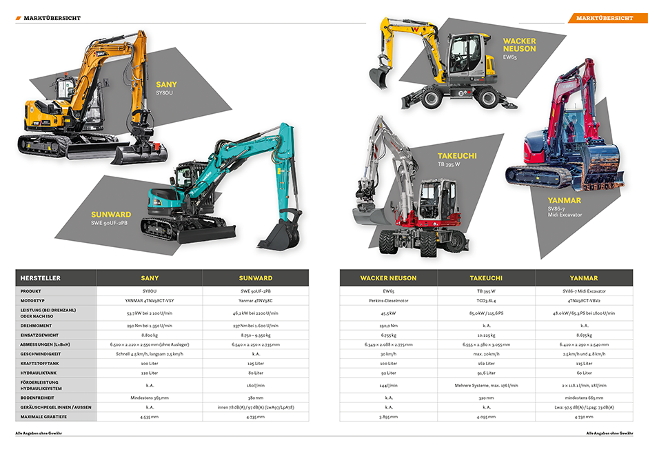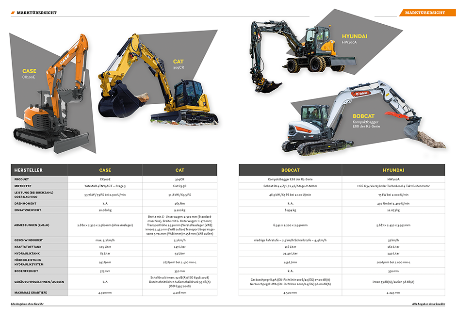 Wenn hohe Leistung bei geringen Maßen verlangt wird, ist der Kompaktbagger gefragt. Egal ob Erdaushub oder Materialtransport, die praktischen Maschinen sind für eine Vielzahl an Aufgaben geeignet. Ein besonderes Merkmal, das dem Kompaktbagger seine komprimierten Abmessungen verleiht, ist der Oberwagen, der während der Drehung an keinem Punkt über den Unterwagen hinausragt. So kann die Maschine auch in beengten Umgebungen effektiv arbeiten. Durch ein Knickgelenk, mit dem Ausleger und Oberwagen verbunden sind, werden Arbeitsvorgänge auf kleinstem Raum ermöglicht, wie z.B. das Baggern an einer Gebäudekante entlang. Dabei haben Anwender die Wahl zwischen einem Gerät mit Ketten oder Reifen. Während erstere den Bodendruck der Baumaschine verringern, wird durch zweitere ein schnelleres Umsetzen ermöglicht. Zusätzlich sind die meisten Midibagger mit einem Planierschild und eventuell auch mit Abstützungen ausgestattet. Darüber hinaus verfügen die Maschinen mehrheitlich über ein umfangreiches Anbauprogramm und – je nach Hersteller – über unterschiedliche Schwerpunkte.