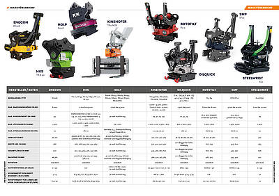 Da es sich jedoch bei einem Tiltrotator um eine eigenständige Sonderausstattung handelt – quasi um eine Art Auslegergelenk – muss en detail erwogen werden, in welcher Form er am Ausleger seine Arbeit verrichten soll. Drei verschiedene Anordnungsarten finden heutzutage – mehr oder weniger – Anwendung. Bei der Sandwich-Bauweise befindet sich sowohl über als auch unter dem Rotator ein Schnellwechsler. Vorteile: Der Tiltrotator kann schnell abgenommen oder an mehreren Baggern betrieben werden. Nachteile: hohe Gewichte und Bauhöhen sowie Kosten für die Schnellwechsler. Bei der zweiten Montageart wird der Tiltrotator direkt am Löffelstiel befestigt. Positiv: Gewicht und Auftragsmaß des oberen Schnellwechslers entfallen, die verfügbare Tragkraft sowie das Lastmoment werden somit erhöht. Negativ: Der Tiltrotator verbleibt bei allen Arbeiten am Stiel, was die maximale Tragkraft des Baggers um dieses Gewicht und Lastmoment reduziert. Eher selten ist die dritte Anwendungsart, bei der der Tiltrotator ganz ohne Schnellwechsler zwischen Stiel und Werkzeug montiert wird.