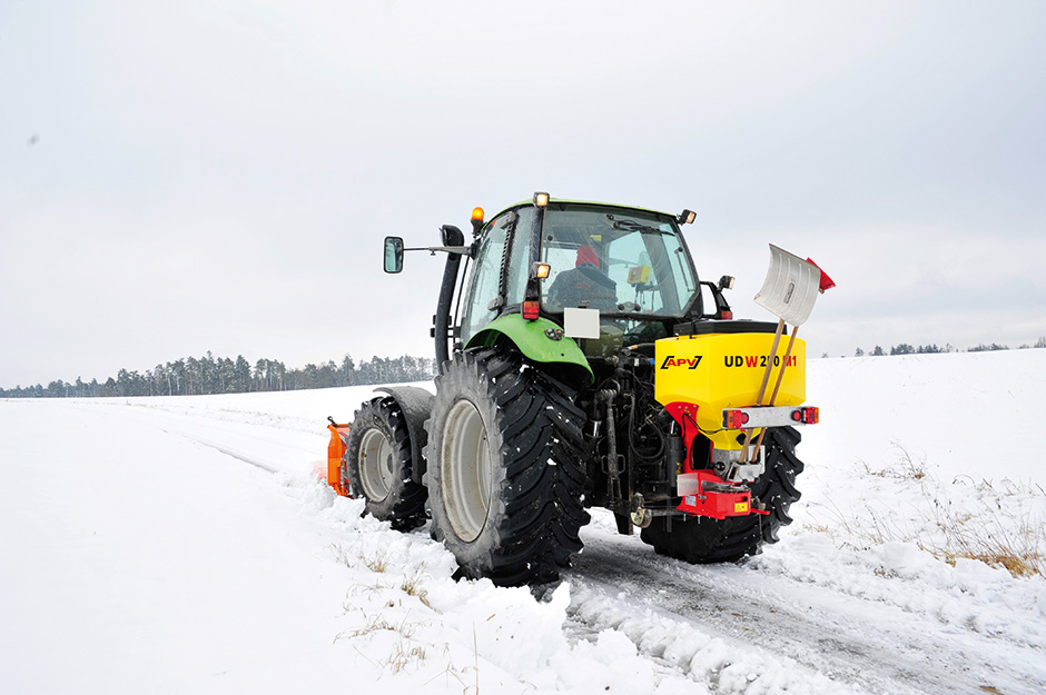 Bei den Streuern der UDW-Serie des österreichischen Herstellers APV Technische Produkte GmbH stechen die sonst nur in der Automobilindustrie übliche KTL-Beschichtung des Rahmens sowie die elektrisch angetriebene Streuscheibe mit vier verstellbaren Wurfschaufeln plus elektrisch geregelter Säwelle sowie ein kettenangetriebenes Rührwerk ins Auge. Und wer sich bei der Anschaffung eine Sensorik mit Steuermodul 5.2 gönnt, verfügt über eine geschwindigkeitsangepasste Mengenausbringung des Streumaterials.