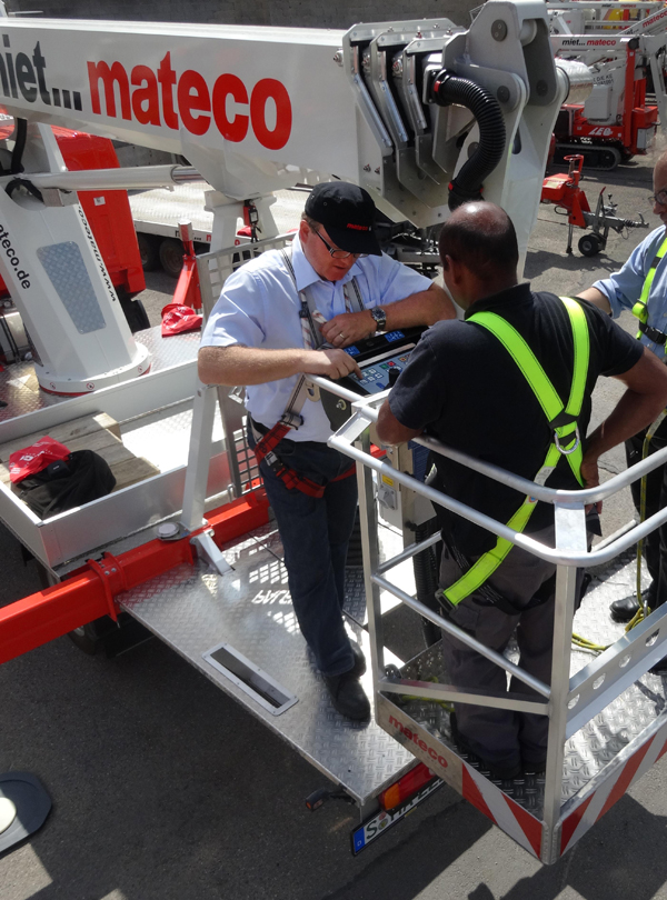 Messebesucher können am mateco-Stand sowohl die Arbeitsbühnen hautnah und live erleben, aber auch alle theoretischen Fragen mit den qualifizierten Trainern besprechen, z.B.: Welche gesetzlichen Grundlagen gibt es, was muss ein Bediener beachten, welche rechtlichen Konsequenzen kann es haben, wenn ein Unternehmer sein Personal nicht schulen lässt?