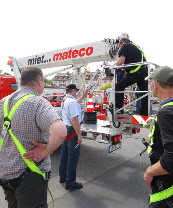 Eine PlatformCard-Schulung dauert einen Tag und kombiniert Theorie und Praxis. Qualifizierte Trainer gewährleisten, dass jeder Schulungsteilnehmer die theoretischen Kenntnisse auch an den Geräten einsetzen kann. mateco leistet damit einen wichtigen Beitrag zur Arbeitssicherheit.