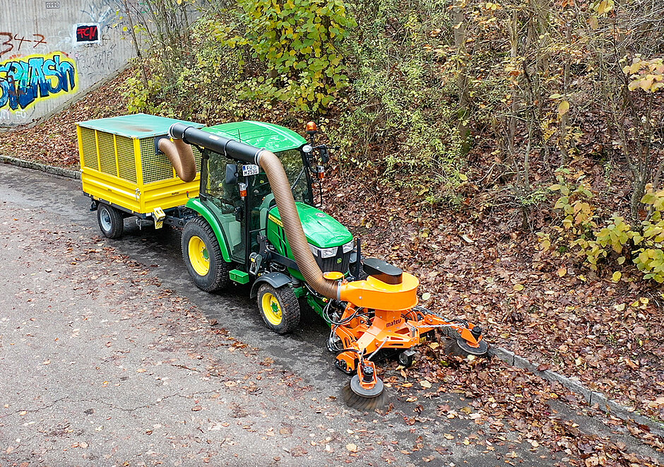 Wenn sich die Blätter bunt färben und erste Herbstwinde durch Parks, Straßen und Grünanlagen fegen, beginnt die Hochsaison für die Flächenpflege. Für Kommunen, Bauhöfe und Dienstleister bedeutet dies: Laubbeseitigung steht auf dem Plan. Ein bewährtes Duo für diese Aufgabe bildet das Saugkehrsystem MRM-120 AS mit aktiver Absaugung in Kombination mit dem Multifunktionstrailer TRL-3D 20. Neu ist zudem eine hydraulisch angetriebene Variante des Saugkehrsystems, die zusätzliche Einsatzmöglichkeiten an kommunalen Fahrzeugen wie Hako Multicar, Hansa, Reform Boki oder ähnlichen eröffnet und dort auch mit eigenen Auffangbehältern betrieben werden kann.