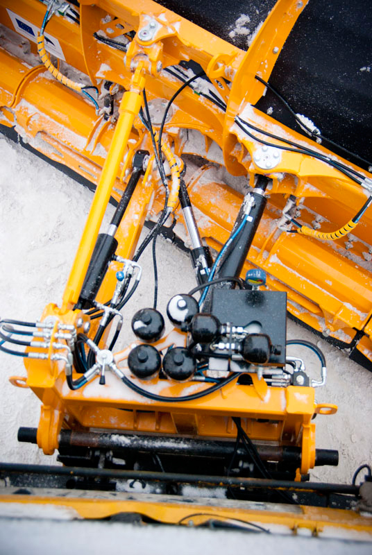 Bei Temperatur- oder Schneelagenänderungen muss der Pflug nicht ausgewechselt werden, sondern der Druck der Leisten wird umgestellt. Richtiger Betriebsdruck gewährleistet eine saubere Fahrbahn, dass den Salzverbrauch und damit verbundene Kosten reduziert.
