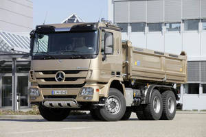 Die dritte Generation des Actros Bau ist durch insgesamt drei Fahrzeuge vertreten, bei denen besonders hervorzuheben sind: ein neues und von Mercedes-Benz patentiertes Straßenfertigerpaket, ferner das automatisierte Getriebe Mercedes PowerShift Offroad, das den Kraftstoffverbrauch senkt und generell den Triebstrang schont - insbesondere die Kupplung. Generell profitieren alle Actros-Baufahrzeuge durch die im Zuge der jüngsten Modellpflege noch einmal erhöhte Robustheit sowie die reichhaltigen Komfort-Features des Fahrzeugs.