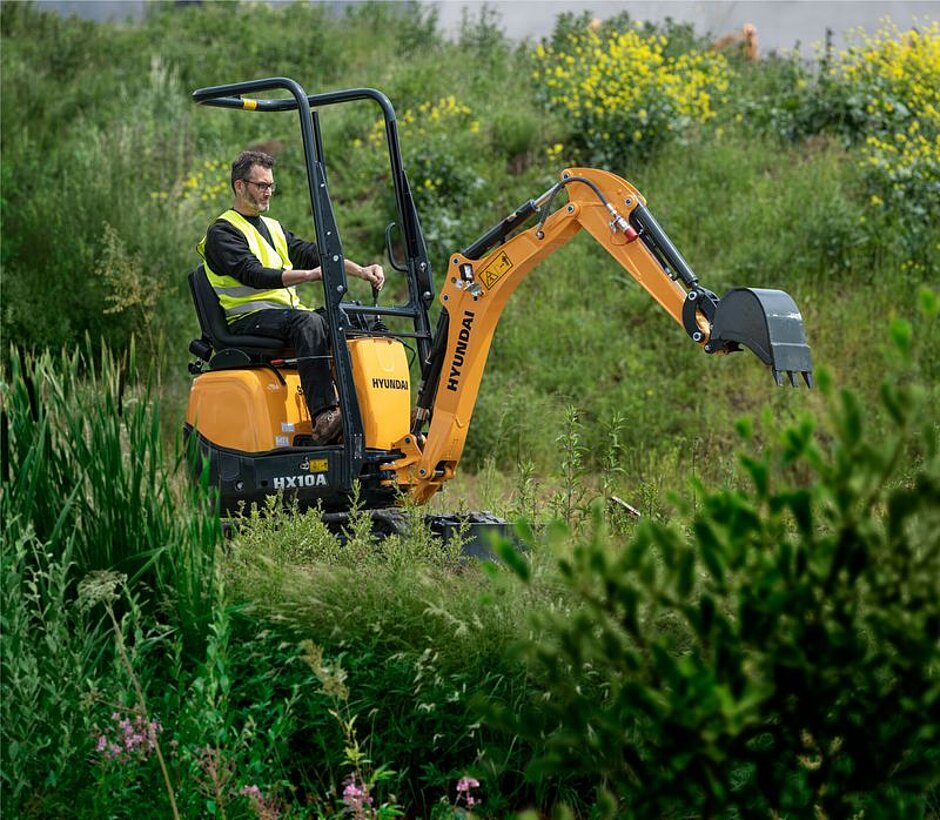 Der neue HX10A von Hyundai ist der ideale Kleinstbagger für Einsätze auf engen Baustellen oder Arbeiten in Innenräumen. Er rundet die HX-Kettenbagger-Range ab, die von einer bis 90 Tonnen Einsatzgewicht reicht. Mit der Einführung des HX10A ist Hyundai erstmals auf dem Mikrobaggermarkt vertreten. Dank seiner geringen Breite lässt er sich problemlos auf Tandemanhängern, gezogen von einem Pkw, transportieren. Er passt durch schmale Türen, was den Betrieb im Gebäudeinneren vereinfacht. Der Monoblock-Ausleger ist schwenkbar, sodass der HX10A Grabarbeiten an einer Wand entlang ausführen kann – Stichwort Kanal- und Leitungsbau. Dies ist besonders auf engen Baustellen nützlich, wenn ein Positionswechsel schwierig werden kann. Mit seinem Betriebsgewicht von 1.000 kg und seinen großen Hub- und Losbrechkräften eignet sich der Ein-Tonnen-Minibagger für GaLa-Bau, für Baustellen in Wohngebieten, für Abbrucharbeiten und für den Einsatz in Innenbereichen.