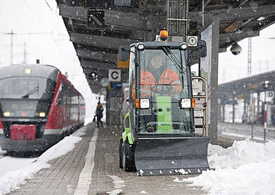 Auch bei nassem Gras, das sich schwer mähen lässt, kommen Sie erstaunlich schnell vorwärts. Je nach Geländebeschaffenheit lassen sich bis zu 13 km/h erreichen, und die Messer arbeiten in beiden Funktionen völlig problemlos. Auch bei hohem Tempo ist das Ergebnis überzeugend, denn der Rasen präsentiert sich ebenmäßig und ohne Reifenspuren. Das liegt zum einen daran, dass die Gewichtsverteilung zwischen Geräteträger und angebauten Geräten ausgezeichnet ist, zum anderen sind die Reifen so breit, dass sie nur bei sehr ungünstigen Bedingungen einsinken können. Sollte die Rasenfläche uneben sein, treten die Stützräder des Mähwerks in Aktion, sodass Tempo und Leistungsfähigkeit erhalten bleiben.