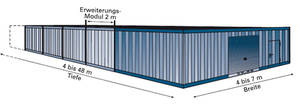 Die ursprünglich für den Baustelleneinsatz konzipierten SchnellBau- Container von BOS werden durch Erweiterungsmodule zur kleinen Lagerhalle. Diese "ContainerCombinationen" bieten verschiedene Grundflächen, sind jederzeit einfach standortveränderbar und stellen eine preisgünstige Lösung für viele Anwendungen dar. Mit oder ohne Boden, in Größen von 3x4 m bis 5x6 m und einer Höhe von 2,1 m – alles ohne Baugenehmigung. Eine Investition mit hohem Kosten-/Nutzen-Faktor!