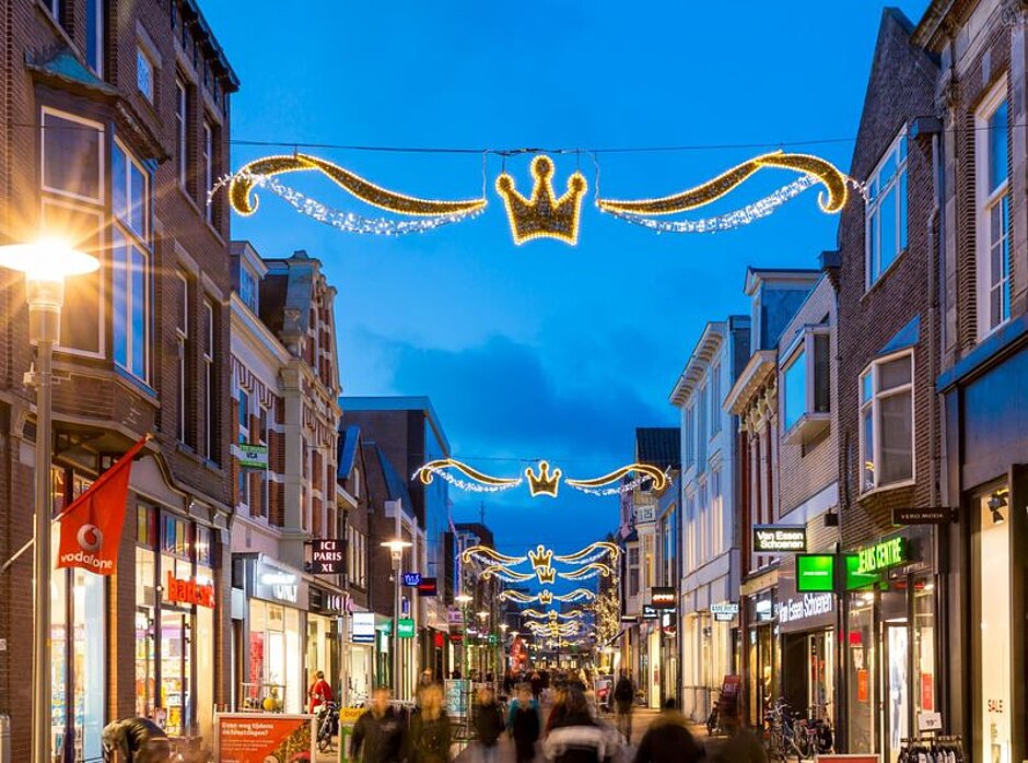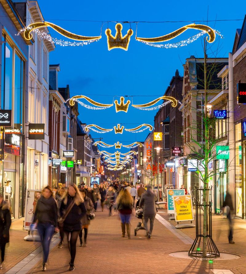Aus diesem speziellen Bezug bzw. diesen royalen Banden kreierte MK Illumination das Thema der letztjährigen Weihnachtsdekoration im Stadtzentrum von Appeldoorn. Die symbolische Krone wurde zum Hauptmotiv für die hängenden Straßen-Beleuchtungen und das prächtig schmückende Resultat aus Rope Lights kombiniert mit unserem goldenen „Carpet“ Material war in der Tat eines Königs würdig.