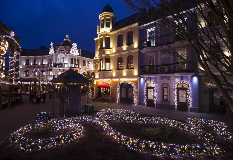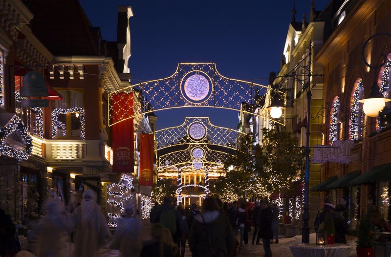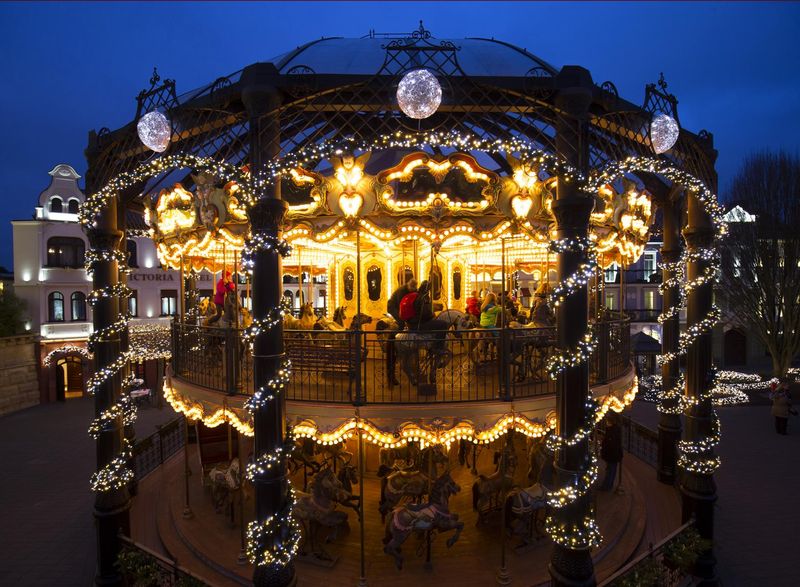 Über ein Kilometer glitzernder Girlanden aus speziellen funkelnden Lichtpunkten zierten die historischen Straßen und Beete. Mehr als 70.000 LEDs leuchteten entlang der Themenwelt-Fassaden und Fenster, rankten sich an den Säulen der historischen Karussells empor und ergänzten die filigranen Straßenüberspannungen.