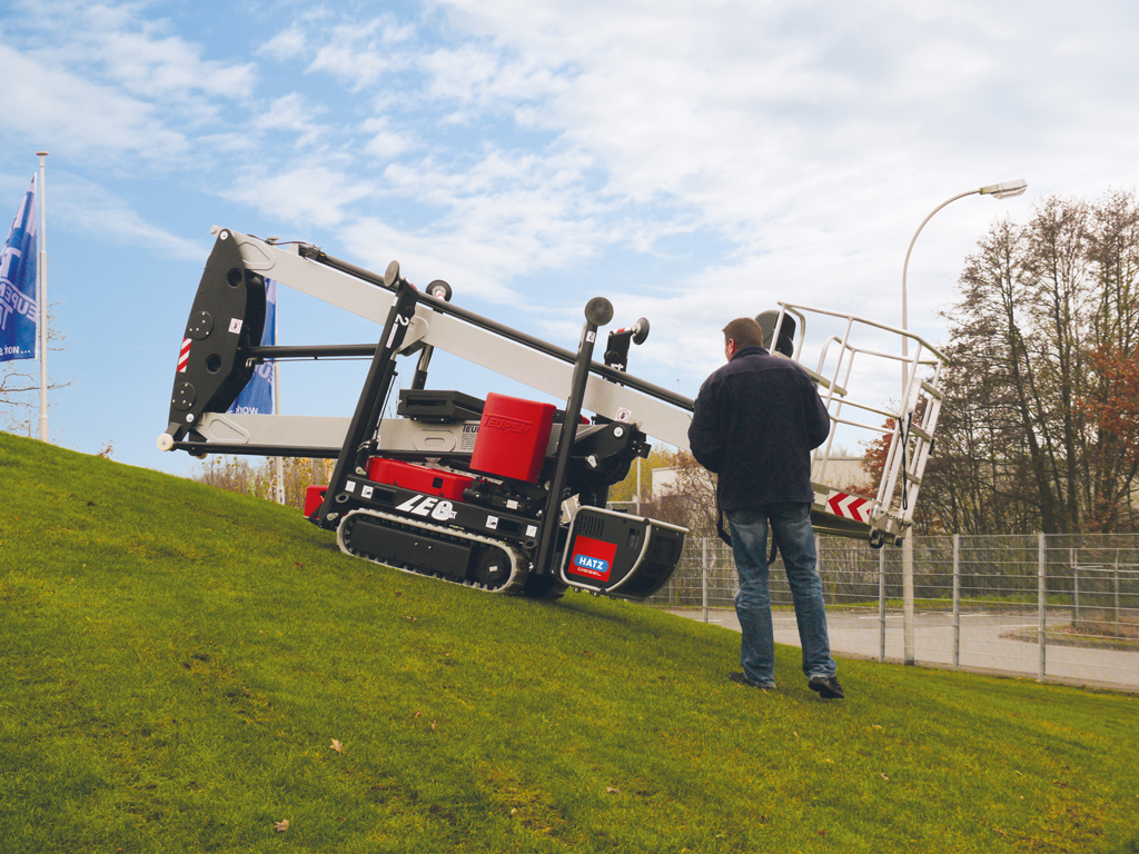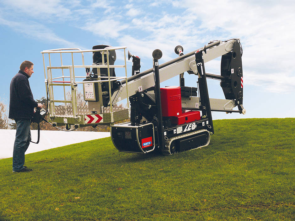 Kraftvoll arbeitet sich der LEO durch das Gelände zum Arbeitseinsatz im Stadtpark. LEO steht dabei aber nicht für Löwe, sondern für die Arbeitsbühne LEO 15GT der Teupen GmbH aus Gronau. Diese Arbeitsbühne mit einer Arbeitshöhe von max. 14,70 m bewegt sich auf abriebfesten Gummiketten vorwärts und wird von einem Hatz Diesel 1B30 angetrieben. Es ist ein luftgekühlter Einzylinder-4-Takt-Dieselmotor, der 5,4 kW/7,3 PS leistet. Der Hatz 1B30 eignet sich gut für das modulare Antriebskonzept von Teupen. Der vom Kunden gewählte Motor wird in das passende Gestängemodul eingebaut und dieses danach an die Arbeitsbühne montiert. Da er nicht ins Chassis integriert werden muss, erhöht sich die Effizienz der Arbeitsbühnenfertigung – ein Vorteil für den Kunden. In dieses Modulkonzept von Teupen passt der Hatz Dieselmotor hervorragend: Einmal, weil seine Einbauabmessungen (max. 37 cm breit und 43,1 cm hoch) wirklich klein sind. Das macht unter anderem der stehende Zylinder und das patentierte SCS (Single Cam System) möglich. Mit ihm erfolgt die Betätigung der Einspritzpumpe und der beiden Ventile nur über einen Nocken und über Schlepphebel. Zum Zweiten hat er ein sehr geringes Gewicht von nur 35 kg. Der LEO 15 GT wird viel und gerne im Garten- und Landschaftsbau genutzt. Auch hier kommt dem Anwender ein weiterer Vorteil des Hatz Motors zugute. Alle Wartungspunkte sind einfach zu erreichen und zudem auf einer Seite des Motors angeordnet. Das ist bedienerfreundlich und ein wichtiger Teil des Hatz Motorenkonzepts. Auch die Robustheit, die Hatz Motoren auszeichnet, ist ein Pluspunkt, der bei den oftmals sehr fordernden Einsätzen positiv zum Tragen kommt. Die gute Basis für die Langlebigkeit des Motors sind unter anderem das Kurbelgehäuse aus Leichtmetalldruckguss, die geschmiedete Kurbelwelle und eine Druckumlaufschmierung mit Feinfilter im Hauptstrom.