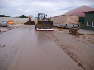 Etwas über die Leistungsfähigkeit dieser neuen Möglichkeit zu fegen, sagt aus, wenn man sich vorstellt dass man eine schlammgefüllte Pfütze nach einem einmaligen Durchfegen komplett trocken legen kann. Einsatzgebiete für KehrFix gibt es nicht nur im Außenbereich sondern in Verbindung mit z.B. einem Gabelstapler auch im Hallenbereich.