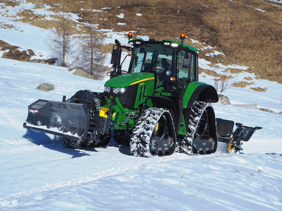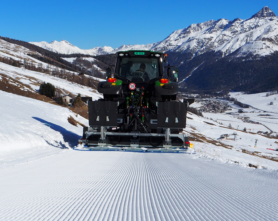 Mit den neuen Anbaugeräten von Müller lässt sich ein Standardtraktor in einen Alleskönner für Winter und Sommer verwandeln. Kundenspezifisch können dabei unterschiedlichste Grundfahrzeuge auf die Anbaugeräte abgestimmt werden. So wird das Arbeitsgerät dank Raupenlaufwerk und Zwölf-Wege-Räumschild zur wahren Schubraupe. Eine Geländeanpassung der vier getrennten Laufwerksketten ermöglicht auch im steilen und unwegsamen Gelände eine hohe Schubleistung. Mit dem Zwölf-Wege-Räumschild und dessen hydraulisch schwenkbaren Seitenflügeln ist ein angenehmes Präparieren von Langlaufloipe, Winterwanderweg oder Rodelbahn möglich. Dies ist auch beim Verteilen von Kunstschnee sehr vorteilhaft. Durch den bodenschonenden Einsatz bei Verwendung eines Traktors kann die Dicke der Kunstschneedecke der Loipe kleiner ausfallen. So wird kostbare Energie sowie Wasser gespart und die Umwelt geschont.