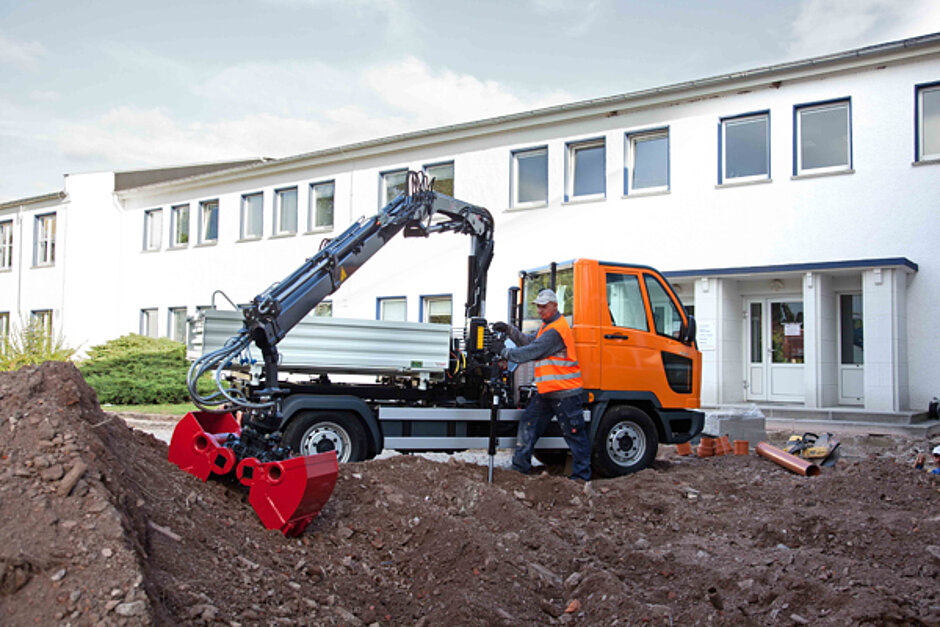 Er hat den Namen Multicar verdient. Denn er ist mit seinen drei Anbauräumen, seiner Stärke und der leistungsstarken Hydraulik gut auf die unterschiedlichsten Aufgaben auf Baustellen und im Galabau vorbereitet. In Verbindung mit den aktuell über hundert am Markt erhältlichen Anbaugeräten ist er ein echtes Multitalent. Mit einer Kehrmaschine macht er Gehwege und Straßen nach den Bauarbeiten sauber. Mit einem Schneeschieber sorgt er im Winter auch auf dem eigenen Betriebshof für freie Fahrt. Mit einem Mähwerk hält er Grünflächen in Schuss. Mit Erdbohrer, Heckenschere oder Häcksler wird er zum unentbehrlichen Helfer in der Grünpflege. Und mit erhöhter Ladepritsche, Absetzkipper, Abrollkipper oder einem Anhänger erweitert er seine Möglichkeiten als Transporter.