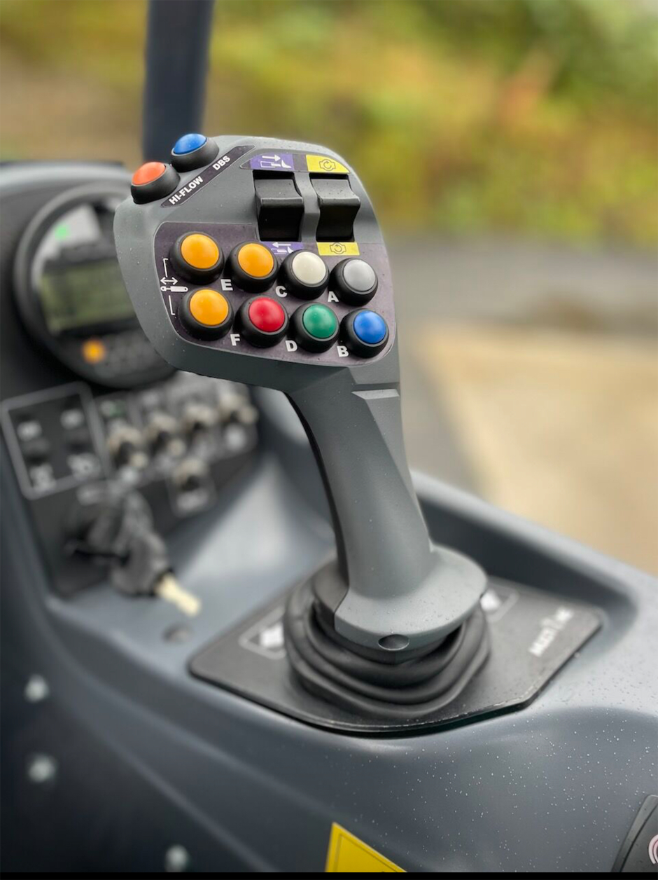 Des Weiteren ist der MultiOne 6.3 iDS in Serie mit zwei Fahrstufen ausgestattet – von 11,5 bis 20 km/h. Dabei überzeugt die erste Fahrstufe durch eine brachiale Schubkraft von 2.050 kgf, die durch die verbesserten Fahrmotoren erzeugt wird. Dagegen lässt sich die zweite Fahrstufe nutzen, um schnell von A nach B zu kommen. Ein neuer Multifunktions-Joystick besticht beim MultiOne 6.3 iDS durch optimierte Benutzerfreundlichkeit sowie Präzision – inklusive verbesserter Sichtbarkeit und Erreichbarkeit der Schaltflächen. Letztlich bedeutet das überarbeitete Design mehr Komfort, geringere Ermüdung des Bedieners und damit in der Konsequenz eine höhere Produktivität.