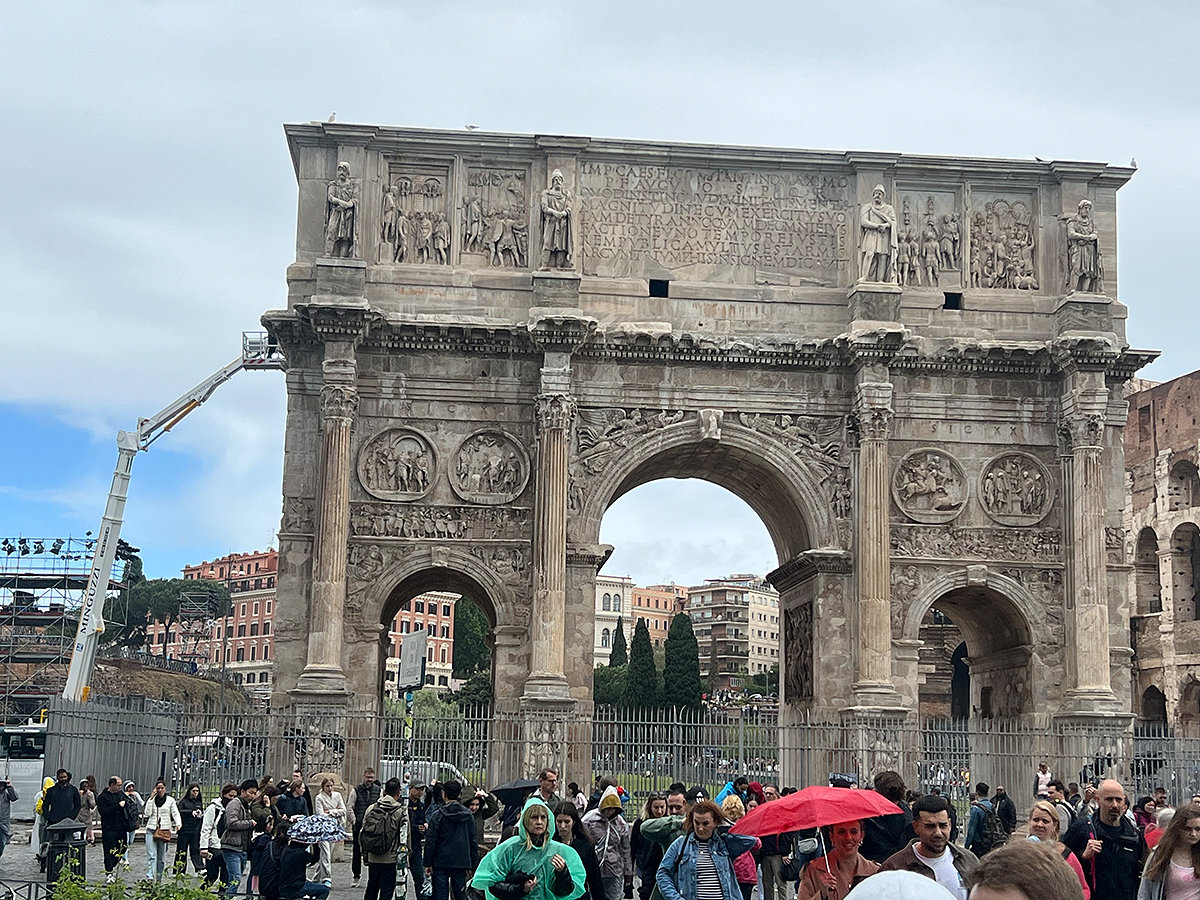 Im Herzen des Archäologischen Parks des Kolosseums ist jüngst die Installation eines Blitzschutzsystems am Konstantinsbogen – einem der ikonischsten Monumente des kaiserlichen Roms – abgeschlossen worden. Der Bogen, der entlang der antiken Triumphstraße (zwischen dem Circus Maximus und dem Titusbogen) steht, ist der größte noch erhaltene Triumphbogen und erinnert an Konstantins Sieg über Maxentius am 28. Oktober 312 v. Chr. nach der Schlacht an der Milvischen Brücke. Mit einer Höhe von etwa 25 Metern wurde er teilweise unter Verwendung von Materialien und architektonischen Elementen früherer kaiserlicher Monumente errichtet.