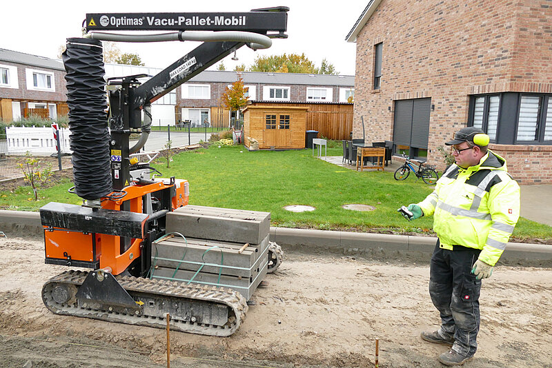 Franz-Josef Werner: Das ist schwer vergleichbar. Das wäre so, als wenn Sie das erste Automobil, den Benz Patent-Motorwagen aus dem Jahr 1886, mit einer heutigen Mercedes S-Klasse vergleichen. Aber es gibt zwei technische Besonderheiten, die damals durch ein weltweites Patent geschützt waren und bis heute vom Grundprinzip so noch verbaut werden. Zum einen die spezielle Lenkung – die Maschine ist grundsätzlich ausgestattet mit einer Zwei-Achs-Drehschemel-Lenkung. Das Besondere: alle vier Räder rollen bei Lenkbewegungen gleichmäßig. Es wirken keine Schubkräfte auf das frisch verlegte Pflaster. Zum anderen besteht unser Pflastergreifer auch heute noch aus sechs einzelnen Greifarmen, die durch Federstahl miteinander verbunden sind. Dadurch passt sich der Greifer der Steinlage auch bei extremen Toleranzen an. 1978 funktionierte der Greifer rein mechanisch, seit 1994 arbeiten wir mit Hydraulik im Greifer. Aufgrund dieser speziellen Eigenschaft mit sechs Greifarmen, benötigen wir nur 60 Bar Hydraulikdruck und schonen dadurch das Pflaster.