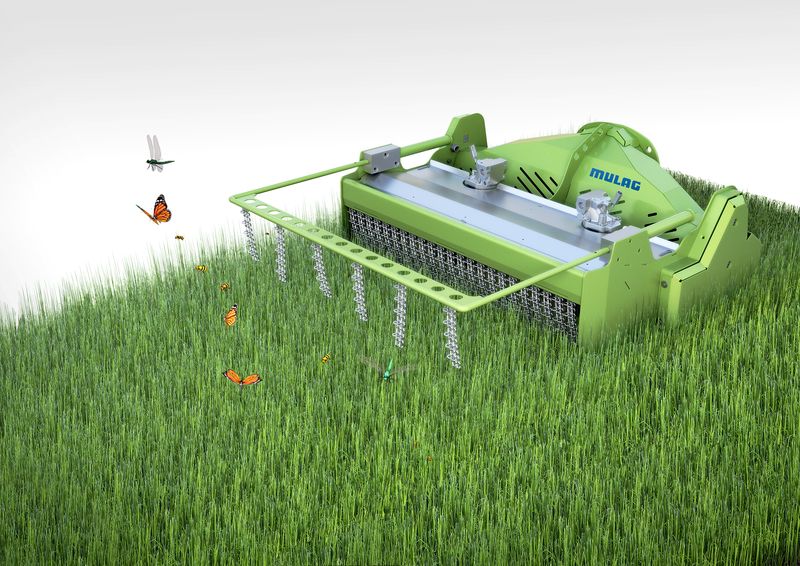 Bei der Neuentwicklung wurden die relevanten Aspekte aus Mähverfahren, Schnitthöhe und überrollter Fläche systematisch betrachtet, um ein möglichst schonendes Verfahren zu erhalten. Der neue MULAG-Grünpflegekopf ECO 1200 plus basiert auf einem Scheibenmähprinzip, ist jedoch mit den im Markt bisher verfügbaren Systemen nicht zu vergleichen. Ihm ist zudem eine mechanische Abstreifvorrichtung vorgeschaltet. Durch das rechtzeitige Aufscheuchen der im Gras sitzenden Insekten und ein Aufnehmen des Mähgutes mittels gezielter Luftführung und weitestgehend geschlossenem Boden, gelangen deutlich weniger Lebewesen in den Mähkopf. Die Angriffsflächen des Schneidwerkes wurden durch das innovative Konzept minimiert. Eine erhöhte Schnitthöhe gewährleistet ökologisch schonenderes Mähen. Im Nebeneffekt entstehen durch das Aufnehmen des Mähgutes magere Grünflächen, die eine sehr gute Grundlage für blütenreiche Vegetation bilden.