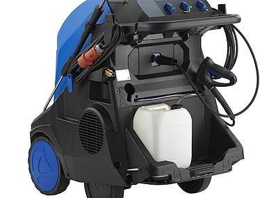 Das Schnittgut beansprucht im kompakten, aber ausgesprochen geräumigen Grassammelbehälter wenig Platz. Das Fassungsvermögen beträgt ganze 750 Liter. Er muss also weniger häufi g entleert werden, und beim Entleeren braucht der Fahrer nicht mal auszusteigen. Er steuert den ganzen Entleervorgang mit dem Joystick vom Fahrersitz aus: Die Heckklappe öff net sich automatisch und die Höhe des hydraulischen Kippliftes lässt sich stufenlos zwischen 575 mm und 1860 mm wählen. Die Kipphöhe ist somit auf sämtliche dazwischen liegende Höhen einstellbar und der Grassammelbehälter kann direkt zum Beispiel in einen Container entleert werden.