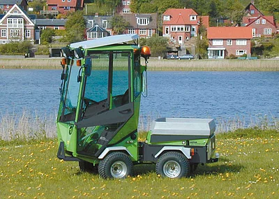 4-Rad-Antrieb und 34 PS verleihen dem EGHOLM 2200 große Zugkraft sowohl auf abschüssigen Flächen als auch bei nassen und glitschigen Verhältnissen. Er ist einfach durch nichts aufzuhalten. Soll er ausschließlich für Arbeitsaufgaben im Grünen in der Frühlings-/Sommersaison eingesetzt werden, wird er in der Regel ohne Fahrerkabine, dafür aber mit Überrollbügel gekauft. Beim Komfort werden trotzdem keine Abstriche gemacht. Die Geräte werden mit einem Joystick gesteuert. Ein- und Aussteigen sind leicht und auch ergonomisch richtig gemacht und die Sicht vom Fahrersitz aus ist fantastisch. Der Sitz ist optional auch mit Luftfederung erhältlich.