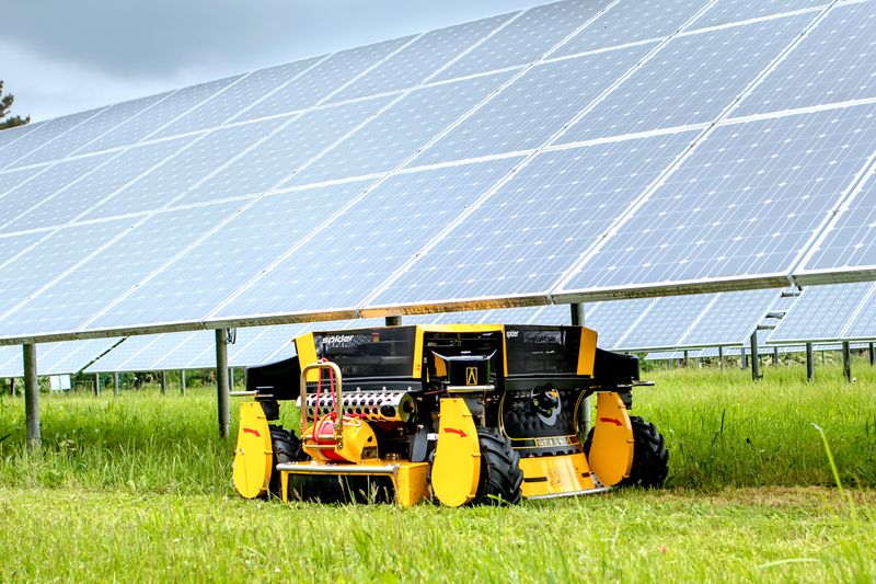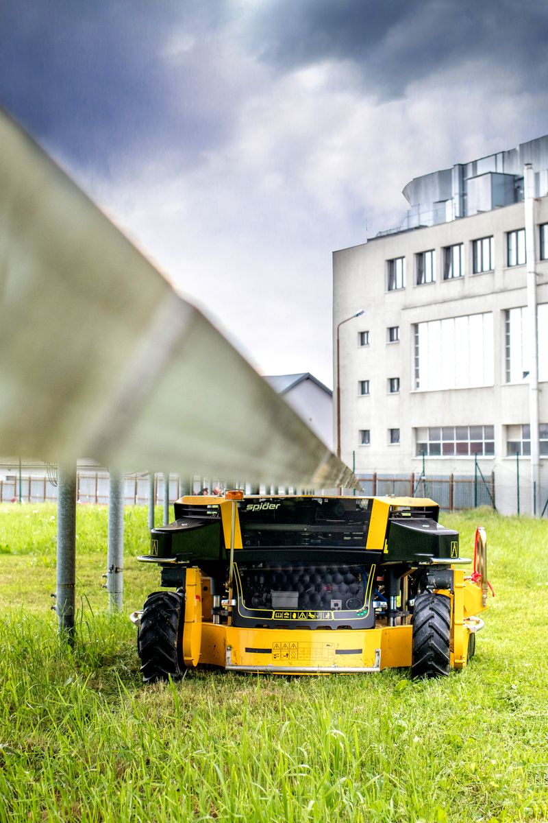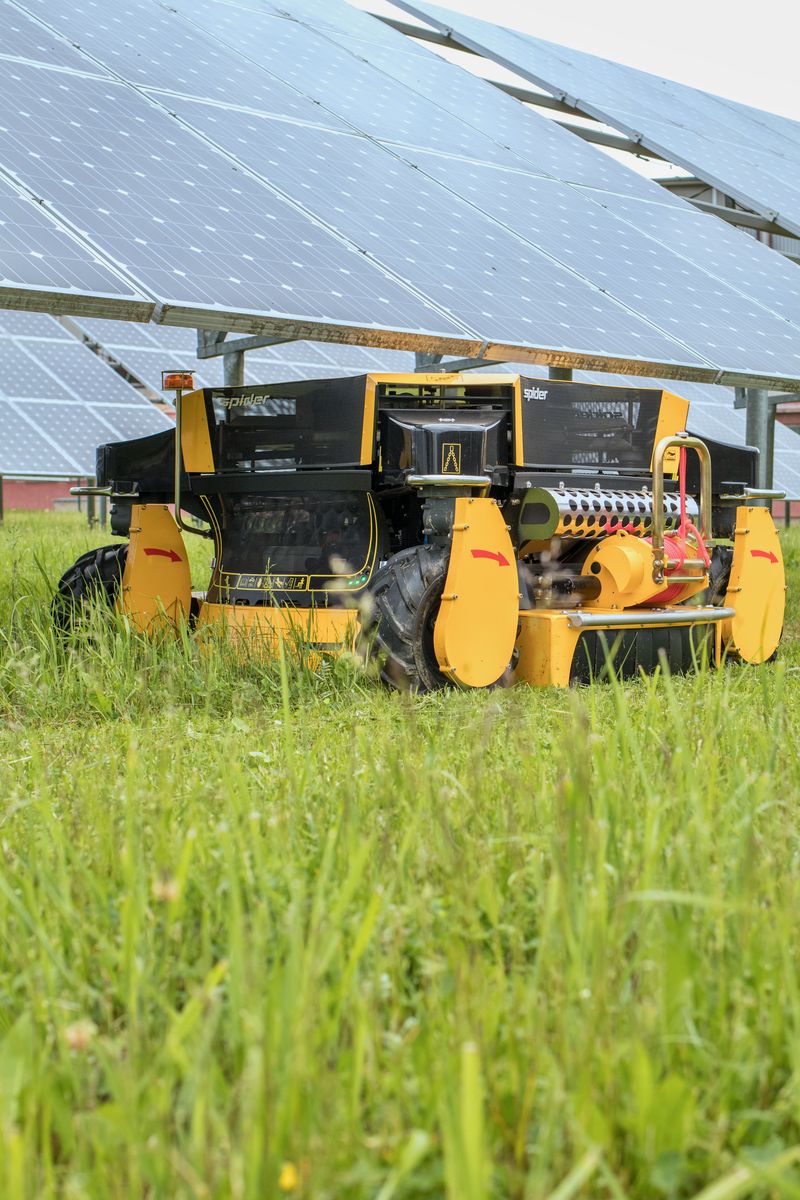 Wie alle Modelle der Spider-Familie verbraucht auch der 2SGS dank seines sparsamen Kawasaki-Motors wenig Kraftstoff und stößt dabei nur geringe Mengen an Schadstoffen aus. Der Spider 2SGS ist mit 82,5 cm Bauhöhe und dank seiner platzsparenden Hydraulikmotoren ein sehr niedriger Mäher. Deshalb lässt er sich bestens für das Mähen unter Photovoltaik-Paneelen einsetzen. Dort ist die Rasenpflege besonders wichtig, weil die Leistung ganzer Solar-Reihen durch den Schattenwurf von zu hohem Gras extrem reduziert wird. Bei fehlender Pflege wird weniger Energie durch die Solarzellen erzeugt, was zu Gewinneinbußen führen kann.