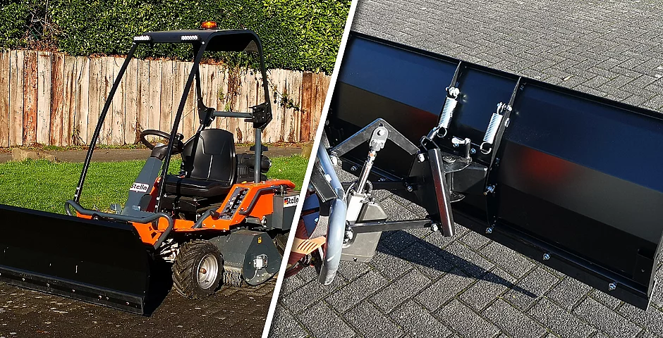 Eine ausreichende Höhe von 50 cm garantiert in Verbindung mit dem abgestimmten Gleitwinkel der Schürfleisten auch das Räumen von höherem Schnee. Mittels eines eigens entwickelten Kuppeldreiecks wird das Schneeräumschild werkzeuglos aufgesetzt. Über einen drehmomentstarken Elektrozylinder erfolgt die Höheneinstellung. Zwei höhenverstellbare Gleitteller regulieren die exakte Bodenführung. Auch bei schneller Fahrt räumt die stabile Schürfleiste sauber und gleicht Unebenheiten aus. Mittels eines selbstrastenden Bolzens wird die manuelle Seiten-Verschwenkung des Schneeräumschildes fixiert.
