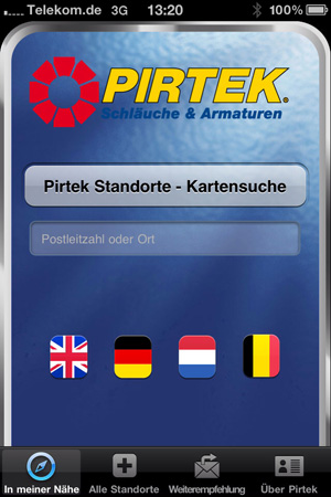 iPhone-User können dann auch die deutsche Anwendung kostenfrei herunterladen und per Fingertipp den nächstgelegenen Pirtek-Standort finden.